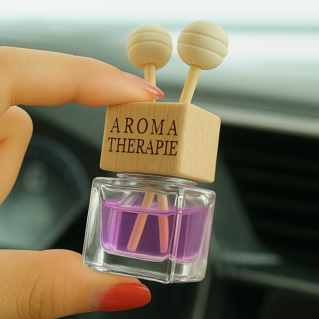 Remove the wooden cap, take out the plastic seal, and close it tightly. Hang it from your mirror or place it in a cup holder. Gently tilt the bottle once to let the scent soak into the wood — then enjoy long-lasting freshness.